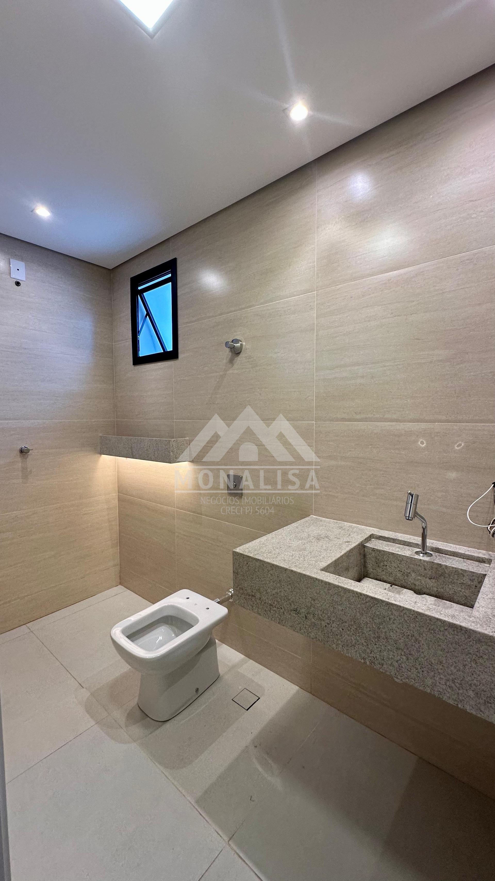 Metais e louças sanitárias de qualidade superior, com vasos de válvula de descarga.
