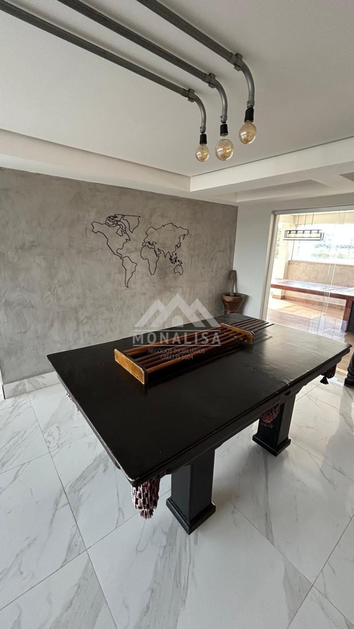 Sala ampla para até 3 ambientes, com painéis planejados e mesa de sinuca